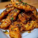 Crispy chicken tenders coated in a sweet and savory honey garlic sauce, cooked to perfection in an air fryer for a guilt-free treat.