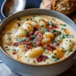 A creamy, hearty soup made with bacon, cheddar cheese, and tender gnocchi, perfect for chilly evenings.