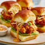 Delicious and crispy Bang Bang Chicken Sliders topped with a flavorful sauce, perfect for game days or casual dinners.