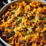 This Beef Noodle Casserole brings cozy, home-cooked flavor to your table with simple steps and pantry-friendly ingredients. It feels like a hug in a dish. The noodle base turns soft and tender, the beef adds hearty bite, and the melted cheddar on top ties it all together. You will love how it tastes, and you will also love how easy it is to make. You do not need special tools or fancy skills. You only need one skillet, a pot for noodles, and a baking dish.