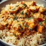 A comforting dish featuring tender chicken and creamy rice, perfect for family gatherings or busy weeknights.