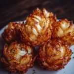 - Fry Them Up: Heat vegetable oil in a deep pan until it reaches 350°F (175°C). Carefully place the coated onion in the hot oil and fry until golden and crispy, around 8–10 minutes.