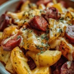 A comforting one-pan meal featuring smoky sausage and creamy cheese with seasoned potatoes, perfect for busy weeknights or gatherings.