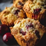 Delightful cherry cobbler muffins featuring fresh cherries and a crumbly, sweet topping, perfect for brunch or snacks.