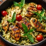 Chicken Orzo with Spinach and Basil Pesto is a hearty, easy-to-make meal that combines the flavors of tender chicken, fresh spinach, and basil pesto. This dish is perfect for a weeknight dinner or a family gathering. You’ll love how quickly it comes together and how satisfying it is. The combination of orzo pasta and veggies makes this a nutritious option that everyone will enjoy.