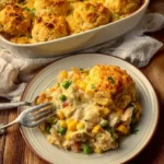 A comforting dish that combines the flavors of traditional chicken pot pie with the convenience of a casserole, featuring a creamy filling and a golden biscuit topping.