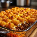 Chili Cheese Tater Tot Casserole is a hearty and comforting dish featuring crispy tater tots, savory chili, and gooey cheddar cheese, perfect for busy weeknights or family gatherings.
