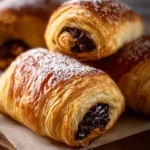 Delicious homemade chocolate croissants with buttery layers and rich chocolate filling, perfect for any occasion.