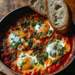 A wholesome and comforting Middle Eastern classic featuring poached eggs in a rich, spicy tomato sauce, perfect for brunch or breakfast-for-dinner.