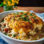 Cowboy Casserole is a comforting, one-dish meal that feels like a warm hug after a long day. This hearty recipe combines ground beef, creamy soup, and crispy tater tots, creating a delightful blend of flavors and textures. Perfect for busy weeknights or casual family gatherings, this dish not only satisfies hunger but also brings everyone to the table. Whether you’re reminiscing about a potluck from your childhood or looking to nourish your family with a delicious meal, this casserole is bound to hit the spot.