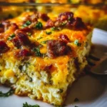 A hearty and addictive breakfast casserole with crispy bacon, gooey cheese, and fluffy eggs, perfect for brunch or breakfast-for-dinner.
