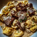 A rich and creamy dish featuring tender steak and cheese tortellini, perfect for cozy dinners or entertaining friends.