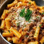 A rich and creamy pasta dish with tender penne, savory ground beef, and a luscious sauce that brings everyone to the table.