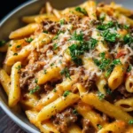Keywords: creamy beef pasta, comfort food, quick dinner, family meal, pasta recipe