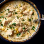 A cozy and creamy chicken white chili that’s perfect for chilly nights, featuring tender chicken, cheeses, and a hint of spice.