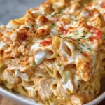 A warm, hearty casserole featuring tender shredded chicken, rich cream cheese, and zesty ranch seasoning, perfect for weeknight dinners or family gatherings.