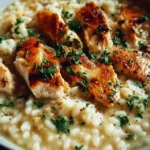 A quick and hearty one-pot meal with tender chicken and creamy rice, perfect for busy weeknight dinners.