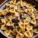 As the evening settles in, you’re likely looking for a comforting meal to wrap up the day. Creamy Parmesan Garlic Beef Bowtie Pasta is not just another pasta dish; it’s a rich, creamy blend of flavors that can uplift any weeknight dinner. Made with tender ground beef, fragrant garlic, and a smooth buttery sauce, this dish is quick to prepare and bubbling with deliciousness. Like many busy home cooks, I often seek something that pairs convenience with flavors that impress, and this recipe has certainly fulfilled that craving.