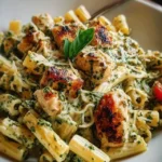 A dreamy Creamy Pesto Chicken Pasta dish featuring tender chicken, creamy pesto sauce, and al dente pasta, perfect for weeknight dinners.