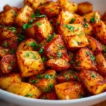 Serve and Garnish: Transfer the potatoes to a serving plate and optionally sprinkle with chopped parsley or chives for added flavor and a pop of color. Serve warm and enjoy!