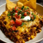 Family dinners can be hectic, and this casserole makes it easy to serve everyone something they’ll love. It’s packed with protein from the beef and black beans, veggies from the corn and tomatoes, and a delightful crunch from the tortilla chips. Plus, you can top it with sour cream and green onions for a fresh finish!