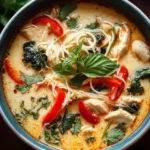 A comforting and flavorful Thai coconut chicken soup made effortlessly in a crockpot, perfect for chilly evenings.