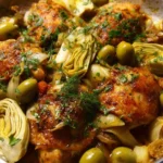 There’s something incredibly satisfying about cooking a meal that feels both comforting and sophisticated, and Double-Duty Chicken with Olives & Artichokes is the perfect candidate for such a dish. I discovered this recipe on one of those busy weeknights when I craved a bit of culinary adventure without a complicated setup. Juicy chicken thighs sautéed to golden perfection with briny olives and tender artichokes come together to create a symphony of flavors that your family will adore. Best of all, it’s a one-skillet wonder that minimizes cleanup, making it a go-to option when time is tight but a delicious meal is still desired.