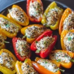 Delightful mini sweet peppers stuffed with a creamy cheese mixture, perfect for appetizers or snacks.