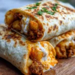 A delicious blend of crispy tater tots, seasoned ground beef, and gooey cheese wrapped in warm flour tortillas, perfect for any occasion.