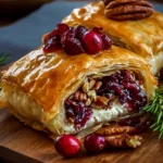 With these simple steps, tips, and answers, you can make Easy Cranberry Pecan Brie Wrapped in Puff Pastry with confidence. Keep the pastry cold, seal the seams, brush with egg, and bake until golden. Then rest, slice, and enjoy the mix of creamy, flaky, sweet, and crunchy in every bite.