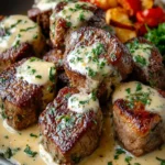 Quick and impressive garlic butter steak bites paired with a rich Parmesan cream sauce, perfect for weeknight dinners or special occasions.