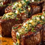 A luxurious dish featuring tender ribeye steaks bathed in rich garlic butter and creamy Parmesan sauce, perfect for any occasion.