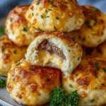 Delightful cheeseburger bombs wrapped in flaky biscuit dough, perfect for casual dinners or game day snacks.