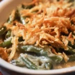 Keywords: green bean casserole, comfort food, side dish, holiday recipe, vegetarian