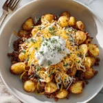 - In a large mixing bowl, combine the diced potatoes with the beef mixture. Fold in the sour cream and half of the shredded cheddar cheese until everything is well coated.