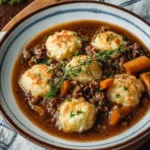 Keywords: ground beef, dumplings, comfort food, one-pot meal, cozy dinner