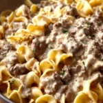 A classic comfort dish featuring creamy goodness, hearty ground beef, and tender egg noodles, perfect for busy weeknights or family gatherings.
