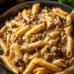 Keywords: creamy beef pasta, high protein, quick dinner, family meals, comfort food