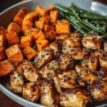 Keywords: honey garlic chicken, roasted sweet potatoes, easy weeknight dinner, healthy chicken recipe