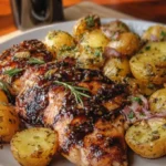 This dish combines bright flavors with comforting textures, featuring marinated chicken and roasted potatoes that are great for any occasion.
