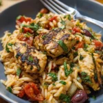 Keywords: Mediterranean chicken, orzo recipe, healthy dinner
