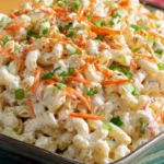 3. Combine Ingredients: In a large bowl, mix the cooled macaroni, grated carrot, diced onion, diced celery, and chopped green onions.
