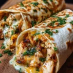 Indulge in these cheesy garlic chicken wraps that are a go-to for family dinners and casual gatherings, combining warm tortillas, gooey cheese, and tender chicken.