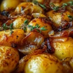 Keywords: roasted potatoes, caramelized onions, vegetarian side dish, comfort food
