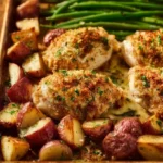 What sets this recipe apart is its simplicity and versatility. You can throw it together quickly, making it ideal for busy weeknights. The combination of juicy chicken, crispy potatoes, and tender green beans satisfies everyone at the table. Plus, it’s a budget-friendly dish that ensures you’re making the most out of affordable ingredients. It’s also an impressive dish to present during family gatherings or casual dinner parties—everyone will rave about the crispy Parmesan crust and perfectly roasted vegetables.