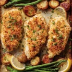There’s something inherently rewarding about creating a meal that’s not only tasty but also efficient. The Parmesan Crusted Chicken Sheet Pan Dinner checks all the boxes: it’s deliciously simple, budget-friendly, and easy to customize. Perfect for weeknight dinners when time is short yet special occasions when you’d like to wow your guests. The tender, juicy chicken takes center stage with a crispy, cheesy coating, complemented beautifully by roasted potatoes and fresh green beans.