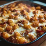 Bake to Perfection: Place the baking dish in your preheated oven and bake for 25-30 minutes, or until the tater tots are golden brown and the cheese is bubbly. Keep an eye on it towards the end to avoid burning.