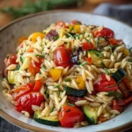 A delightful and nutritious dish combining roasted seasonal vegetables with orzo pasta, perfect for any occasion.