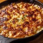 A creamy, cheesy dish featuring tender caramelized onions mingling with melty Gruyère and cream cheese, baked to golden perfection.