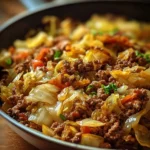 Keywords: easy dinner, one-pan meal, ground beef, cabbage recipe, comfort food